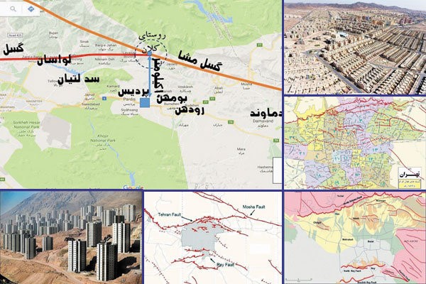 گسلهای اصلی در داخل گستره شهری تهران پهنه گسله شمال تهران و در جنوب تهران گسل های کهریزک و ایوانکی هستند. البته گسل مشا نیز در فاصله 35 کیلیومتر شمال شهر تهران (تهران پارس) در محل روستا کلان (از توابع لواسان) با گسل شمال تهران تلاقی دارد که از دید خطر زلزله این محل را به عنوان یک پهنه خطرناک برای رخداد محتمل برای یک گسیختگی بعد باید تلقی کرد. از سوی دیگر درست در 10 کیلومتر جنوب این نقطه یک شهرجدید به نام شهر پردیس مکانیابی و احداث شده که که محل مهمی برای تجمع جمعیت هست (و جمعیت متاسفانه بیشتر هم خواهد شد.) اخیرا استاندار تهران اعلام کرد که انتخاب این محل برای شهر جدید یک اشتباه تاریخی بود. به هر حال این محدوده جایی است که در تعریفهای زلزلهشناسی در حوزه نزدیک گسل فعال (محل تلاقی شمال تهران و گسل مشا) قرار میگیرد. در این پهنه احتمال جنبشهای شدید و گسیختگی سطحی بیش از حوزه دور از گسیختگی گسل در هنگام زلزله های شدید بعدی وجود دارد. توجه کنید که در محدوده کنونی شهر تهران عملا ساخت ساختمان و برج روی گسل شمال تهران و همچنین روی گسل کهریزک انجام شده است. بنابراین ما با مساله حوزه نزدیک و احتمال خرابیهای بیشتر در آن در حین یک زمینلرزه شدید بعد در داخل پهنه شهری تهران هم مواجه هستیم.