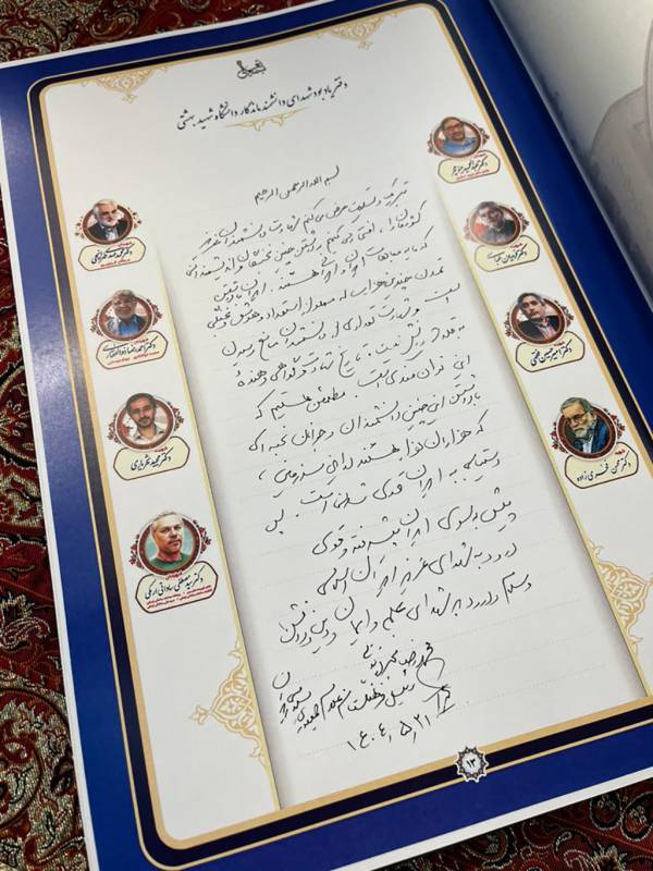 » مراسم آیین گرامیداشت شهدای دانشمند هستهای با حضور دکتر مخبر دزفولی و مقامات عالیرتبه علم و فناوری کشور با تاکید بر ادامه راه این شهیدان، 21 مرداد ماه 1404 در دانشگاه شهید بهشتی برگزار شد